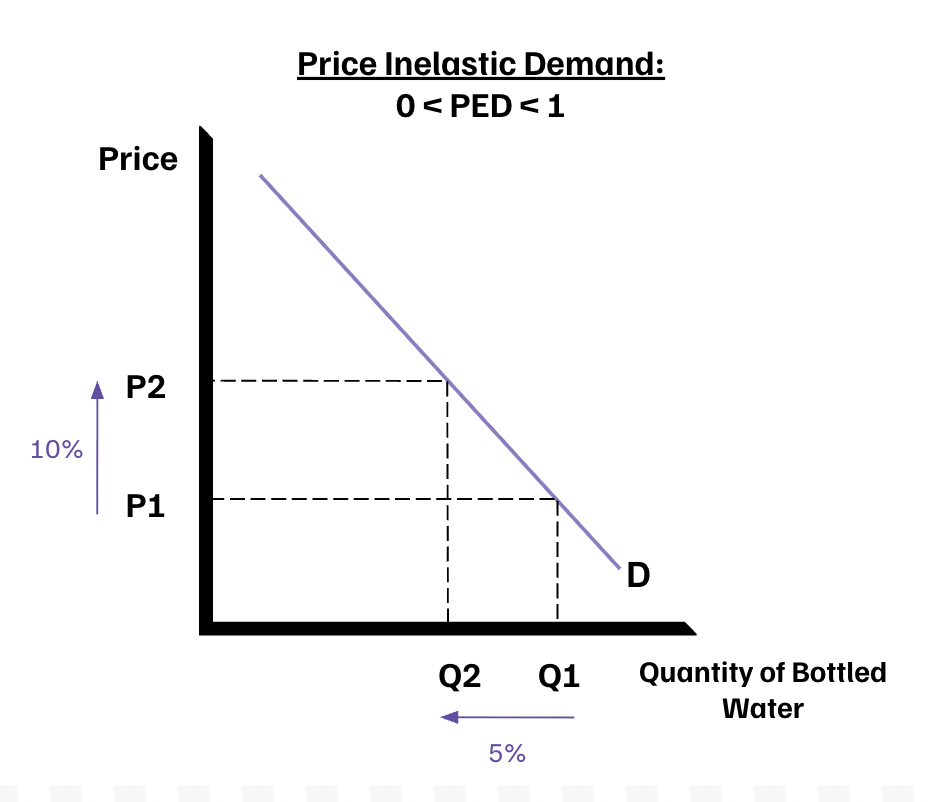 Think bottled water. If the price goes from $1.00 to $1.50, people still buy nearly the same amount because water is a basic necessity. The change in price hardly changes the quantity demanded. Therefore, inelastic demand refers to quantity demanded being relatively unresponsive to price